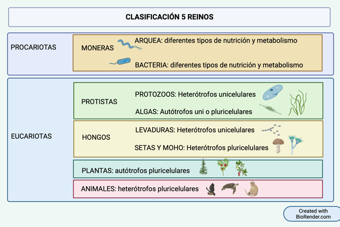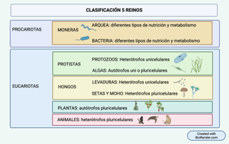 El siguiente taxón es el reino, y es la clasificación más conocida, ésta divide a los seres vivos en cinco reinos: