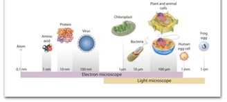Todos los organismos están formados por células. La célula es la unidad básica de la vida. Dentro de estas células tienen lugar todas las funciones vitales y las reacciones químicas necesarias para la vida. Asimismo dentro de las células está la información genética que pasará a las células hijas durante la división celular, que es la manera en la que se reproducen las células. En el siguiente cuadro se puede ver la relación de tamaño entre el átomo (que recordemos es la unidad más pequeña que forma la materia) y la célula (que es la unidad más pequeña de la que está hecha la vida).